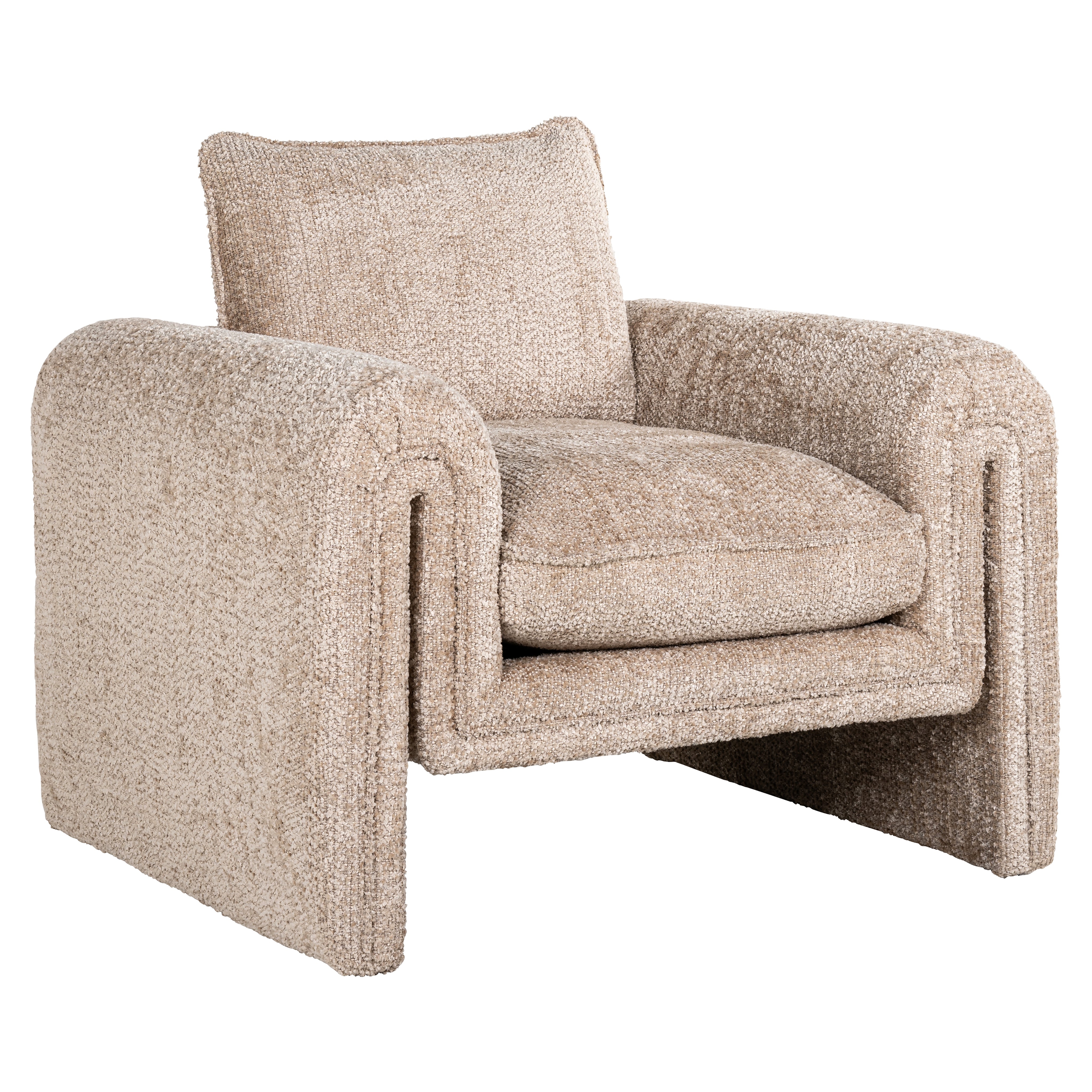 Armchair Sandro, upholstered in the two new Richmond fabrics Lovely Beige and Lovely Cream, embodies classic elegance with a modern twist. These carefully chosen colors, from the warm Lovely Beige to the soft Lovely Cream, seamlessly integrate into a wide range of interiors. Sandro's refined design, combined with the premium fabrics, offers both a luxurious seating experience and a stylish statement, making it an outstanding choice for any living space. Additionally available in our well-known White Chenille fabric.