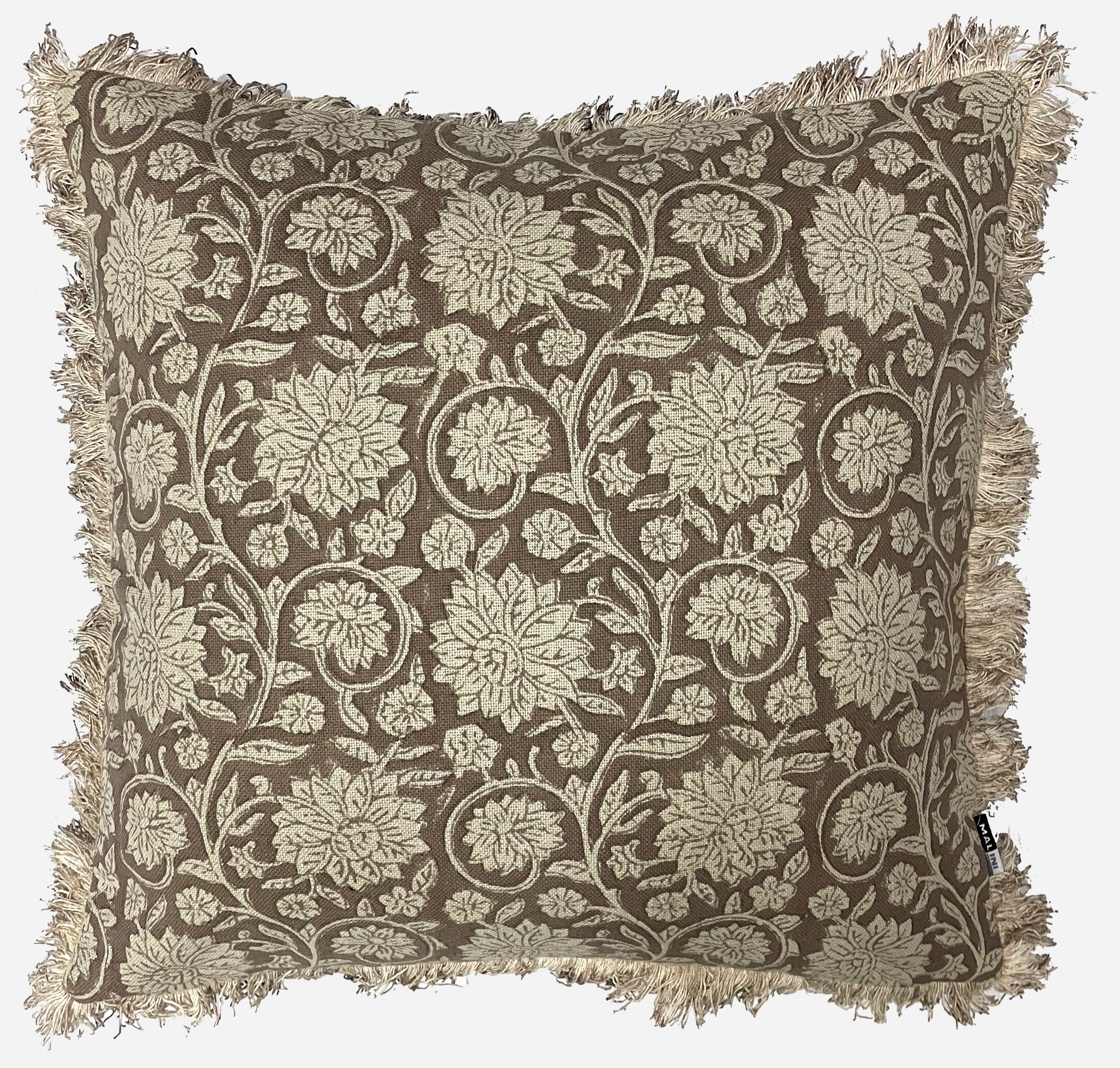 BLOCK PRINTED CUSHION NATURAL 45X45CMS