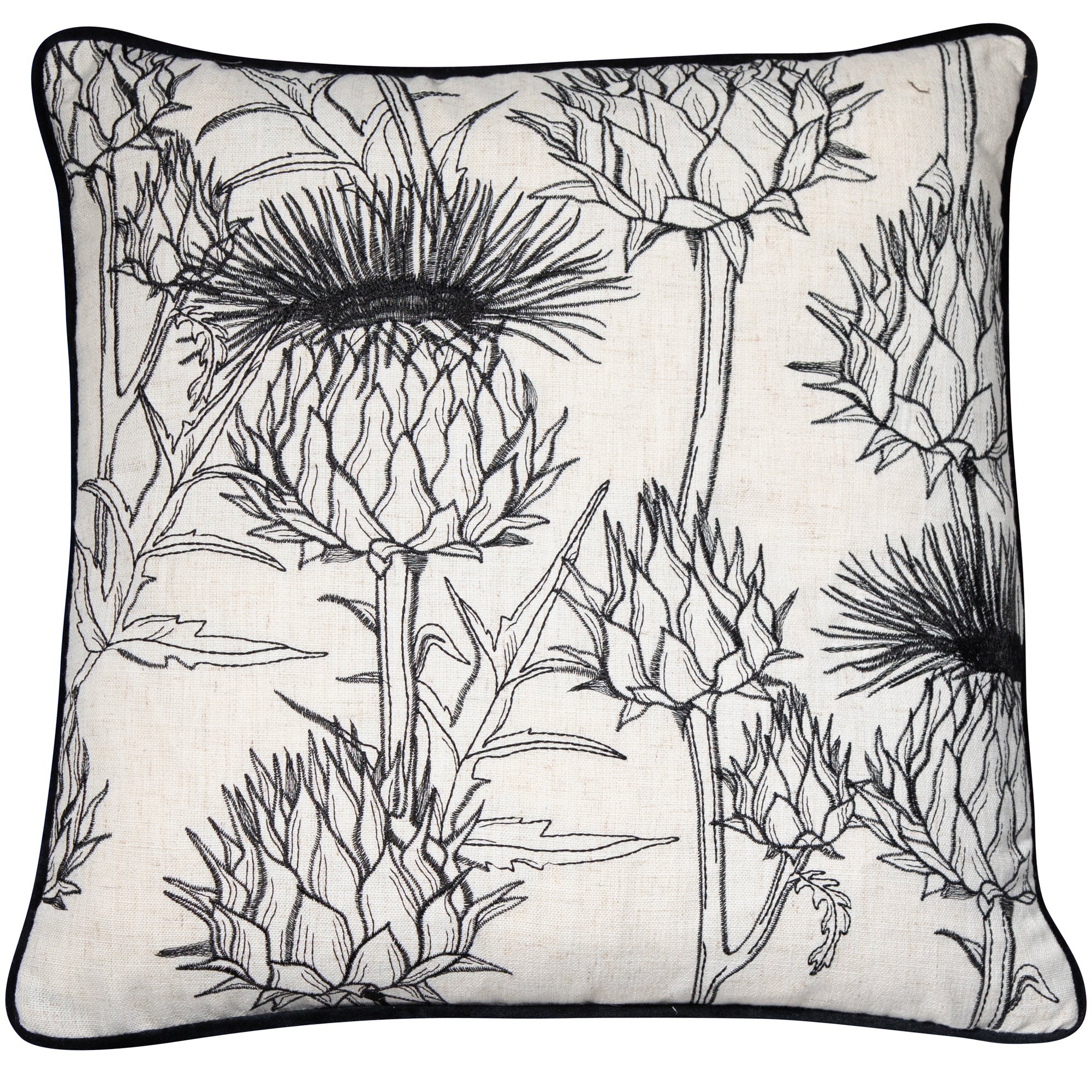 Embroidered Mono Thistle Cushion 45x45