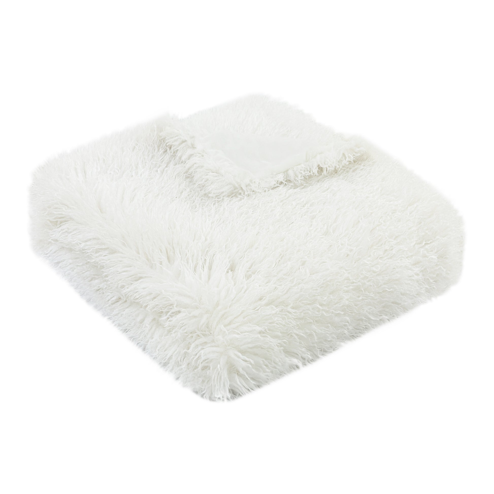 TEXTURED FAUX MONGOLIAN THROW WHITE 130 X 170