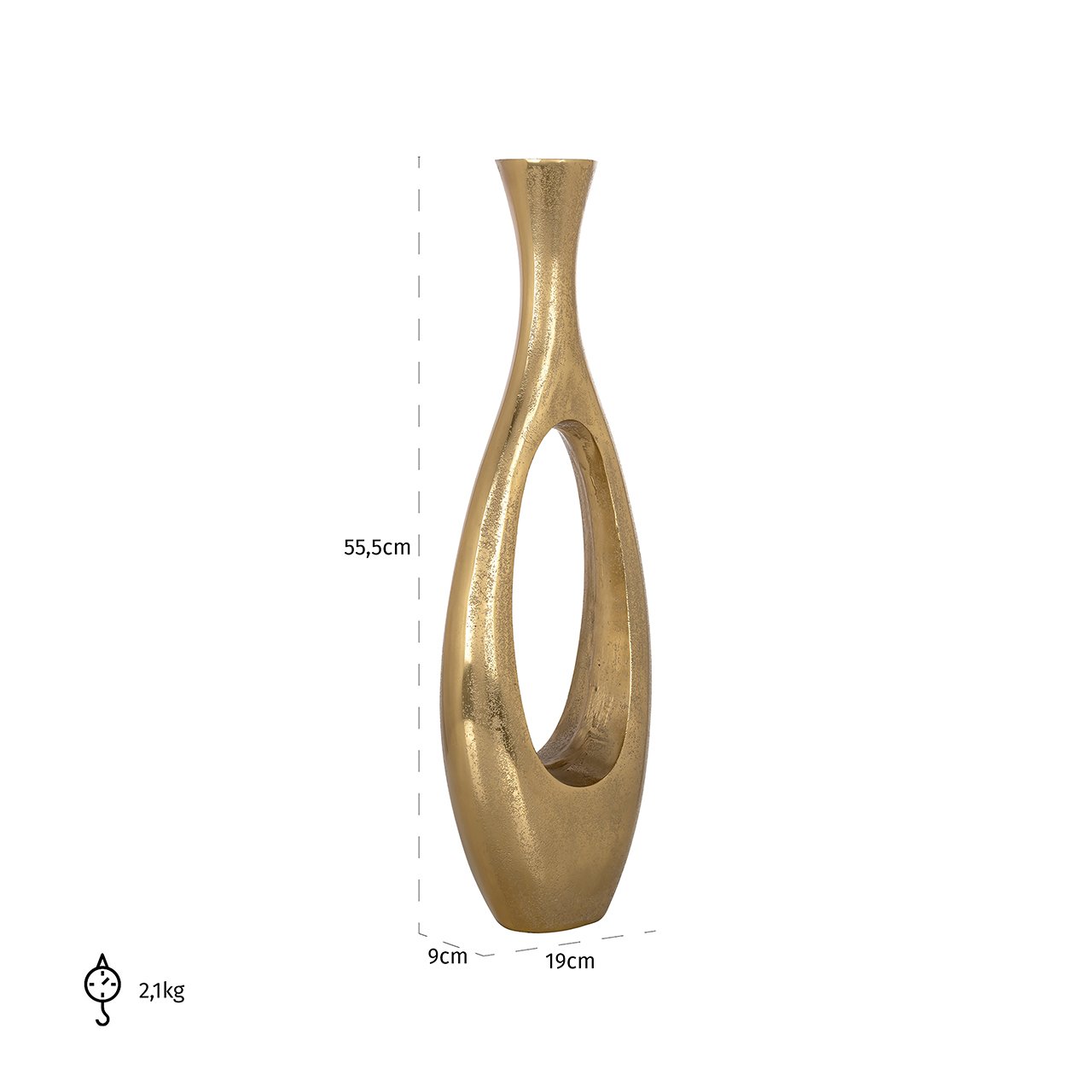 Maak kennis met de stijlvolle Florine vaas, een prachtig ontwerp vervaardigd uit hoogwaardig goudkleurig aluminium met een prachtig open design. Deze elegante vaas is perfect voor het presenteren van bloemen, takken of gewoon als een op zichzelf staand decoratief element. De Florine vaas is beschikbaar in twee maten, zodat u de perfecte variant kunt kiezen die bij uw woonruimte past. Het gestroomlijnde ontwerp en de verfijnde uitstraling maken het geschikt voor zowel moderne als klassieke interieurs. Geniet van de verfijnde schoonheid en de charmante aanwezigheid die deze vaas aan uw interieur toevoegt, ongeacht de gekozen maat.