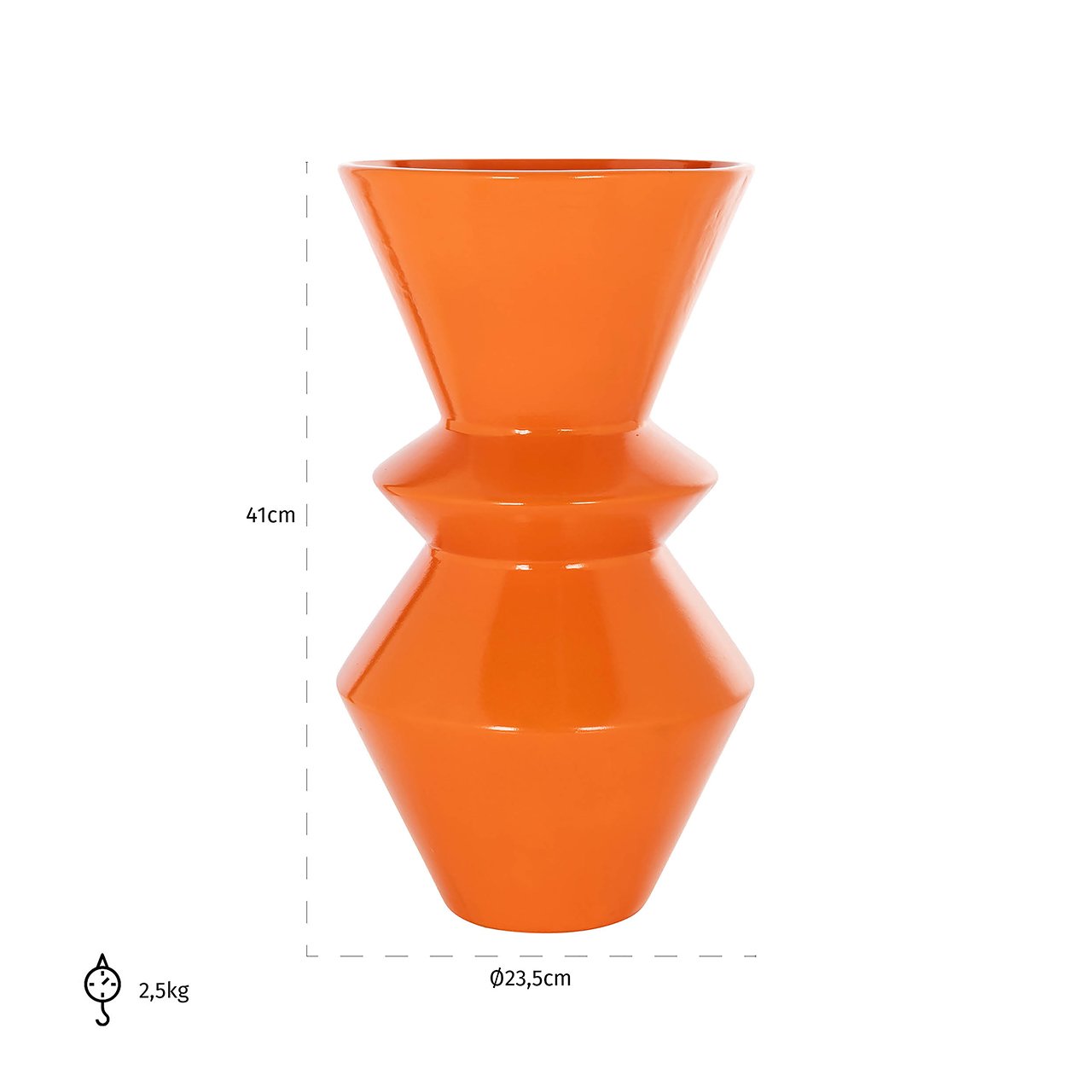 De Vaas Leana, opvallend en stijlvol, is een prachtige toevoeging aan elk interieur dankzij haar levendige oranje kleur. Deze vaas valt direct op door haar heldere, energieke tint, waardoor ze een vrolijke en warme sfeer brengt in elke ruimte. Het ontwerp van Leana combineert moderne lijnen met een klassieke vorm, waardoor het zowel in hedendaagse als in traditionele interieurs past.
