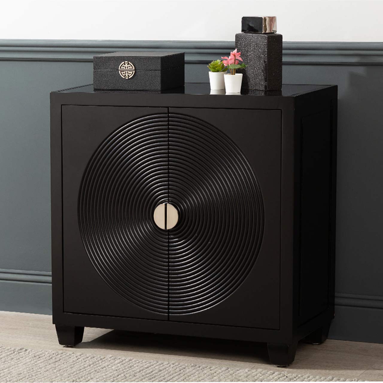 Elon 2 Door Cabinet Black With Mirror Top Includes 2 sets of Handle in Silver and Gold