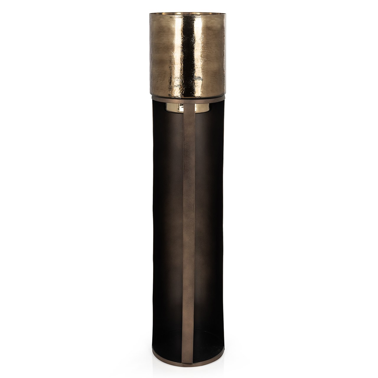 Das Windlicht Dane ist ein Meisterwerk subtiler Eleganz und Handwerkskunst. Aus kupferfarbenem Eisen gefertigt, glänzt es mit Wärme und Verfeinerung dank der wunderschönen Details, die das Design verstärken. Diese einzigartige Verarbeitung bietet ein luxuriöses Aussehen, das jeden Raum verwandeln kann. Mit Optionen in kleinen und großen Formaten bietet Dane Vielseitigkeit für verschiedene dekorative Anforderungen.
