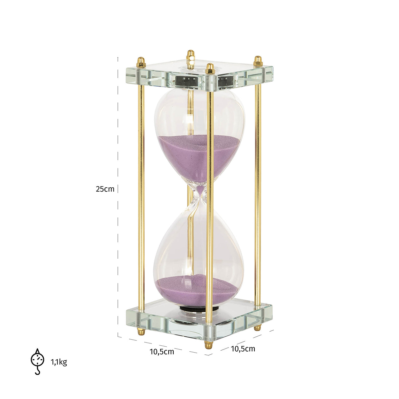 The hourglass Ashton is functional and well-designed. The golden details add a touch of elegance to the overall design. It serves as a reminder of the passage of time as the sand moves through the glass. It is available in two sizes, small and large, and can be placed in various spaces such as an office or living room. It is both practical and decorative.