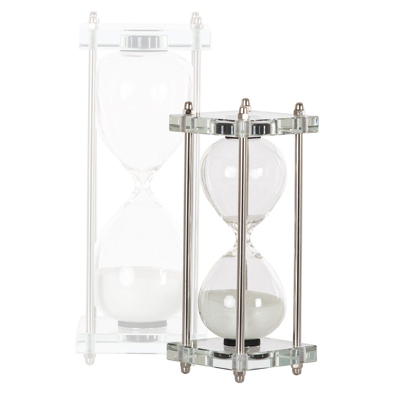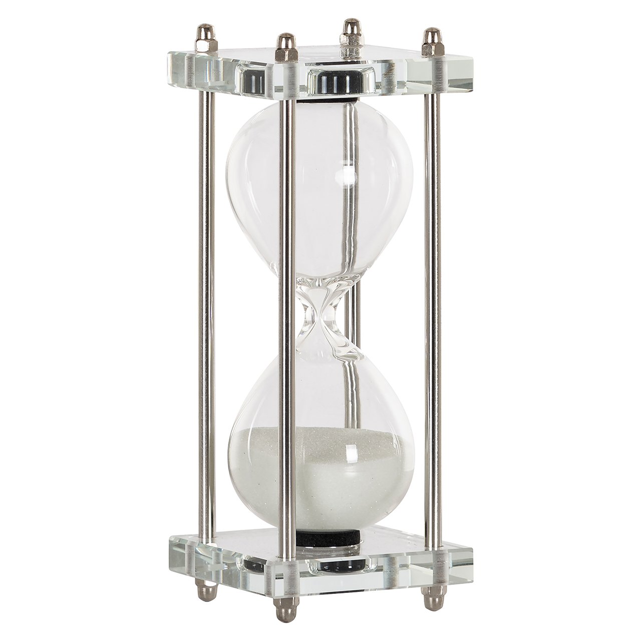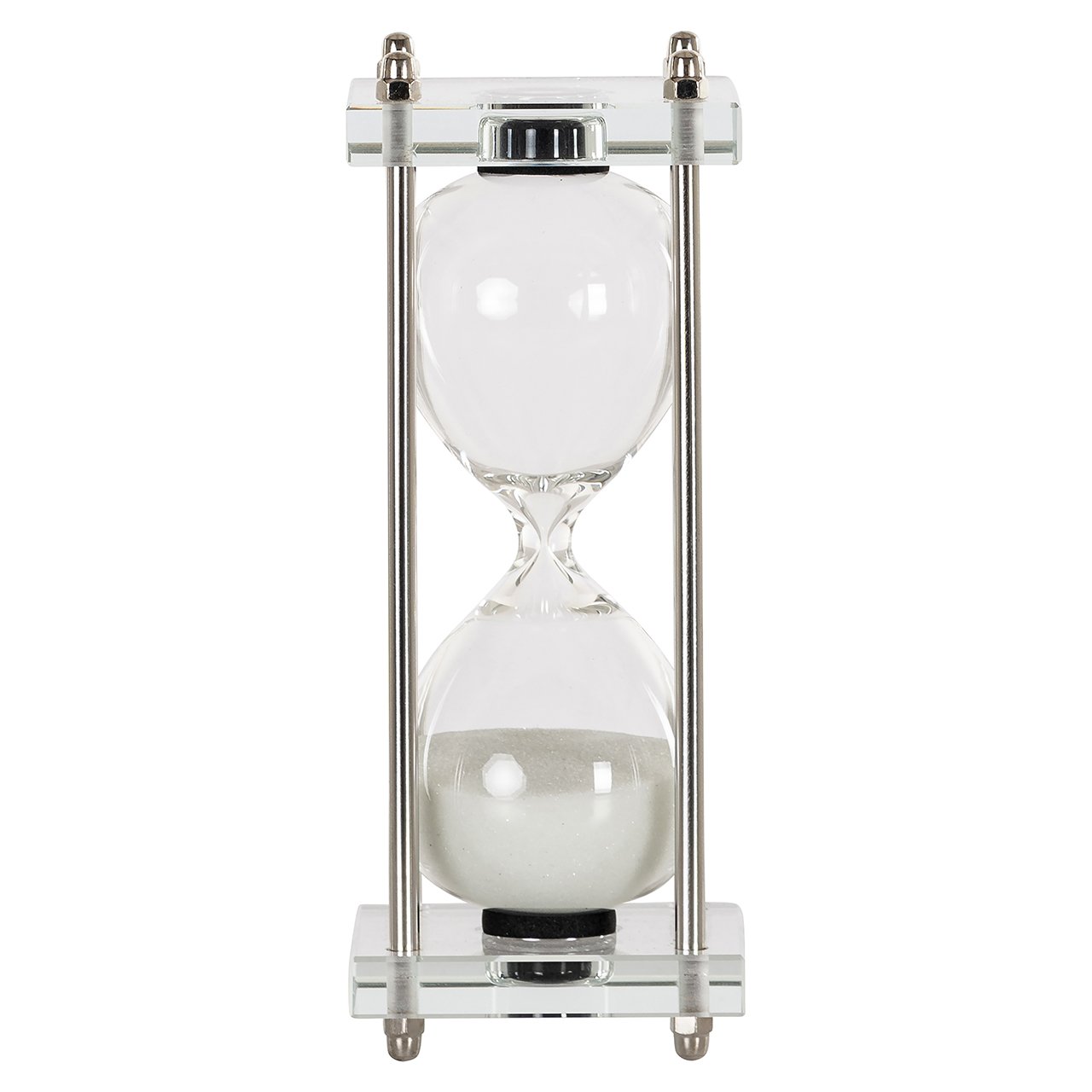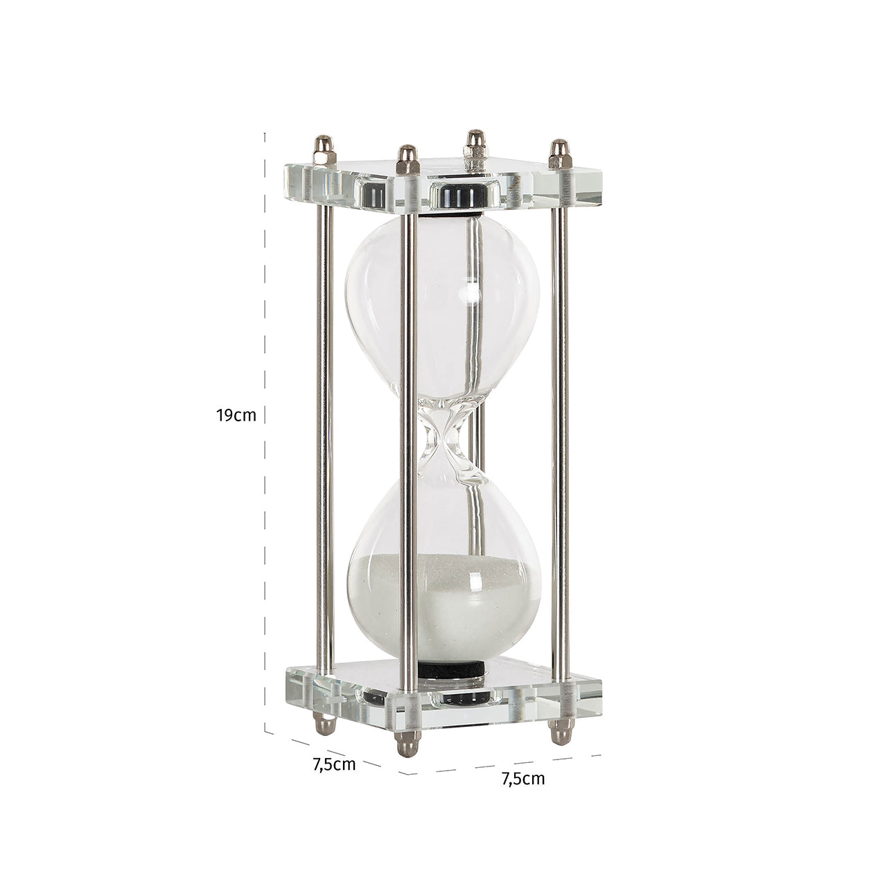 The hourglass Gigi is functional and well-designed. The golden details add a touch of elegance to the overall design. It serves as a reminder of the passage of time as the sand moves through the glass. It is available in two sizes, small and large, and can be placed in various spaces such as an office or living room. It is both practical and decorative.