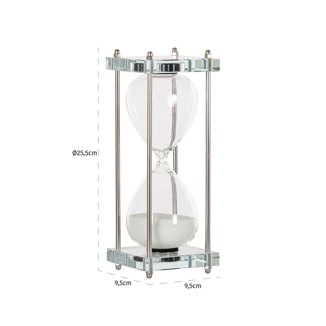 The hourglass Gigi is functional and well-designed. The golden details add a touch of elegance to the overall design. It serves as a reminder of the passage of time as the sand moves through the glass. It is available in two sizes, small and large, and can be placed in various spaces such as an office or living room. It is both practical and decorative.